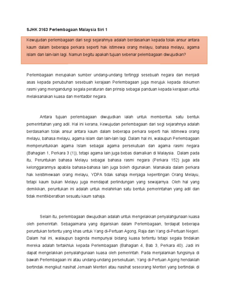 Tujuan Perlembagaan Malaysia Pdf